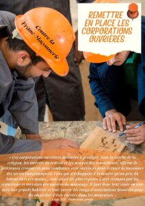 En troisième lieu, une institution due à la sagesse de nos pères et momentanément interrompue par le cours des temps, pourrait, à l’époque où nous sommes, redevenir le type et la forme de créations analogues. Nous voulons parler de ces corporations ouvrières destinées à protéger, sous la tutelle de la religion, les intérêts du travail et les moeurs des travailleurs. Si le pierre de touche d’une longue expérience avait fait apprécier à nos ancêtres l’utilité de ces associations, notre âge en retirerait peut-être de plus grands fruits, tant elles offrent de précieuses ressources pour combattre avec succès et pour écraser la puissance des sectes. Ceux qui n’échappent à la misère qu’au prix du labeur de leurs mains, en même temps que, par leur condition, ils sont souverainement dignes de la charitable assistance de leurs semblables, sont aussi les plus exposés à être trompés par les séductions et les ruses des apôtres du mensonge. Il faut donc leur venir en aide avec une grande habileté et leur ouvrir les rangs d’associations honnêtes pour les empêcher d’être enrôlés dans les mauvaises. En conséquence, et pour le salut du peuple, Nous souhaitons ardemment de voir se rétablir, sous les auspices et le patronage des évêques, ces corporations appropriées aux besoins du temps présent. Ce n’est pas pour Nous une joie médiocre d’avoir vu déjà se constituer en plusieurs lieux, des associations de ce genre, ainsi que des sociétés de patrons, le but des uns et des autres étant de venir en aide à l’honnête classe des prolétaires, d’assurer à leurs familles et à leurs enfants, le bienfait d’un patronage tutélaire, de leur fournir les moyens de garder, avec de bonnes moeurs, la connaissance de la religion et l’amour de la piété.