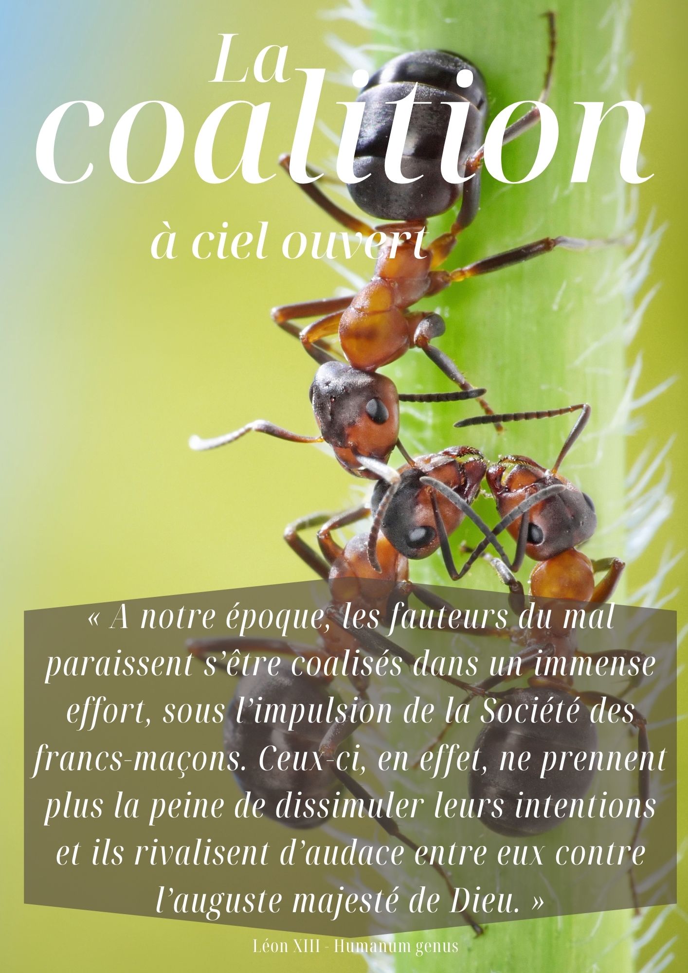 Du reste, nous savons très bien que nos communs labeurs, pour arracher du champ du Seigneur ces semences pernicieuses, seraient tout à fait impuissants si, du haut du ciel, le Maître de la vigne ne secondait ces efforts. Il est donc nécessaire d’implorer son assistance et son secours avec une grande ardeur et par des sollicitations réitérées, proportionnées à la nécessité des circonstances et à l’intensité du péril. Fière de ses précédents succès, la secte des francs-maçons lève insolemment la tête et son audace semble ne plus connaître aucune borne. Rattachés les uns aux autres par le lien d’une fédération criminelle et de leurs projets occultes, ses adeptes se prêtent un mutuel appui et se provoquent entre eux à oser et à faire le mal.