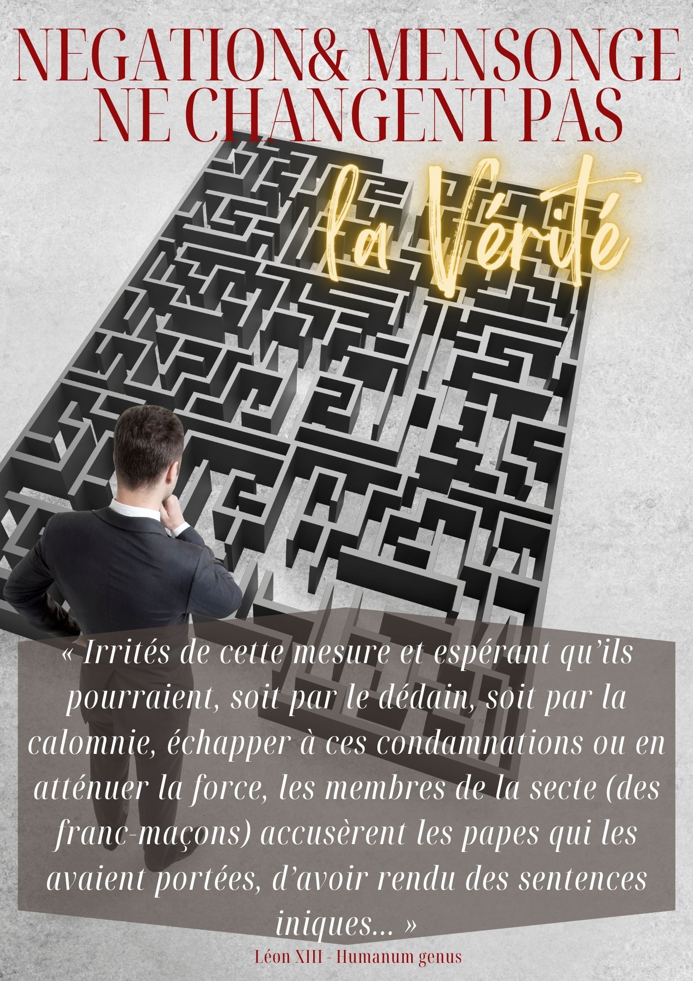 Secondement par vos discours et par vos Lettres pastorales spécialement consacrées à cette question, instruisez vos peuples; faites leur connaître les artifices employés par ces sectes pour séduire les hommes et les attirer dans leurs rangs, montrez leur la perversité de leur doctrine et l’infamie de leurs actes. Rappelez leur qu’en vertu des sentences plusieurs fois portées par Nos prédécesseurs, aucun catholique, s’il veut rester digne de ce nom et avoir de son salut le souci qu’il mérite, ne peut, sous aucun prétexte, s’affilier à la secte des francs-maçons. Que personne donc ne se laisse tromper par de fausses apparences d’honnêteté. Quelques personnes peuvent en effet croire que, dans les projets des francs-maçons, il n’y a rien de formellement contraire à la sainteté de la religion et des mœurs. Toutefois, le principe fondamental qui est comme l’âme de la secte, étant condamné par la morale, il ne saurait être permis de se joindre à elle ni de lui venir en aide d’aucune façon.