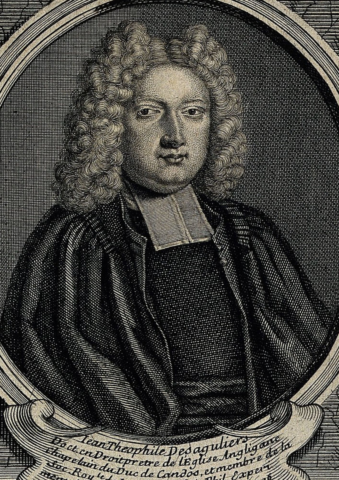 John Theophilus Desaguliers (né « Jean Théophile Desaguillers »), Huguenot français, est né à La Rochelle, le 12 mars 1683 et mort à Londres le 10 mars 1744. En 1694, suite à la révocation de l’Edit de Nantes (1685), sa famille s’enfuit à Islington, près de Londres. Selon l’histoire, J.T. Desaguliers a été introduit clandestinement sur un navire de réfugiés vers l’Angleterre dans un tonneau. D’après son acte de naissance, il fut baptisé le 7 mars 1683.