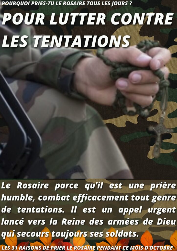 Nous pouvons offrir à l’Immaculée tous nos efforts, contrariétés et souffrances à cette intention, afin qu’elle triomphe du monde. Un jour, on demanda à Napoléon ce qu’il fallait pour gagner une bataille. Il répondit : « De l’argent, de l’argent, et encore de l’argent ! ». De même, quand il s’agit de la sanctification des âmes, il faut la prière, la prière, et encore la prière. Quand la prière manque, l’âme devient faible. On tire du trésor des grâces, autant qu’on y puise. (Conférence du 20.02.1938 ; KMK, p. 215.)