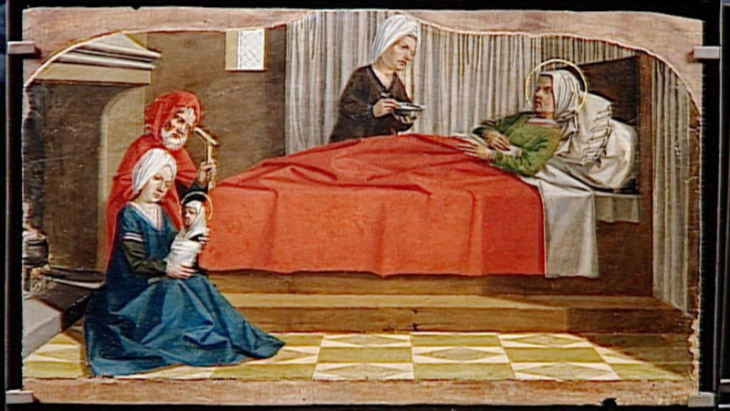Quæ est ista ? chante l’auteur sacré. « Quelle est celle-ci qui s’élève, comme l’aurore à son lever, belle comme la lune, exquise comme le soleil, terrible comme une armée rangée en bataille ? » (Cantique des Cantiques VI, 9.) Elle n’est rien de moins que le chef-d’œuvre de Dieu, que son auteur dévoile en ce jour aux yeux émerveillés de sainte Anne, permettant ainsi, dans l’histoire du monde, la première apparition de la Sainte Vierge ! Issue d’une race royale, trésor caché dans le sein d’une mère, la voici donc, « belle par nature, ignorant absolument toute souillure, [paraissant] dans le monde comme l’éclatante aurore qui jette de tous côtés ses rayons » (Pie IX, Ineffabilis Deus, 8 décembre 1954). Ses yeux, mouillés de leurs premières larmes, unies aux larmes de la vallée qui l’accueille, sont les yeux miséricordieux qu’elle tournera vers les fils exilés d’Ève. Elle est la reine, la mère de miséricorde, l’avocate auprès de Dieu de ceux qui gémissent et pleurent en soupirant après elle. Elle est notre douce espérance : c’est elle, la Femme qui écrasera le démon à la tête et nous ouvrira les portes du Ciel, c’est d’elle que nous attendons notre Sauveur, c’est elle qui nous montrera, après l’exil, Jésus, le fruit béni de ses entrailles ! Quelles promesses merveilleuses autour de cet heureux événement ! Comment mesurer leur richesse ?