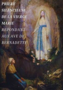 Cette apparition merveilleuse mais silencieuse regardait Bernadette, qui se tenait à ses genoux.