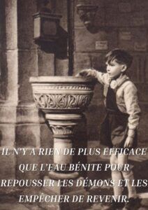 —En tout cas, reprenaient les petites filles, qui plus instruites que la pauvre bergère de Bartrès, savaient un peu de catéchisme, en tout cas, il faut lui jeter de l’eau bénite. Si c’est le diable, il s’en ira. Tu lui diras : « Si vous venez de la part de Dieu, approchez ; si vous venez du démon, allez-vous-en. »