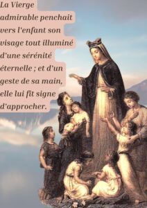 La divine Vierge sourit à cette demande naïve. Ses lèvres s’ouvrirent et elle parla :