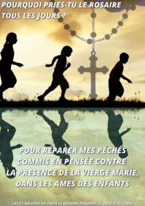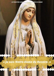 Notre-Dame Elle-Même dit que les âmes dévouées au rosaire et à son Cœur Immaculé « seront aussi précieuses au Seigneur que des fleurs déposées par moi pour embellir son trône ». Notre-Dame Elle-Même veut allumer et maintenir en nous l’amour pour le rosaire et pour son Cœur Immaculé.