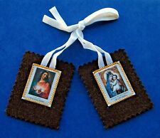 Le scapulaire de Notre-Dame du Mont-Carmel, familièrement appelé le « scapulaire brun », nous vient de l’Ordre du Carmel, une famille religieuse mariale. Le 16 juillet 1251, saint Simon Stock, moine anglais alors Prieur Général des Carmes, suppliait la Vierge Marie d’aider l’Ordre qui était très persécuté. Celle-ci lui apparut, tenant en main un scapulaire, et lui déclara : « Ceci est le privilège pour toi et pour les tiens. Celui qui mourra revêtu de cet habit sera sauvé, il ne souffrira pas des feux éternels. C’est un signe de salut, une sauvegarde dans les dangers, un gage de paix et d’éternelle alliance. » Et elle lui remit le Scapulaire.