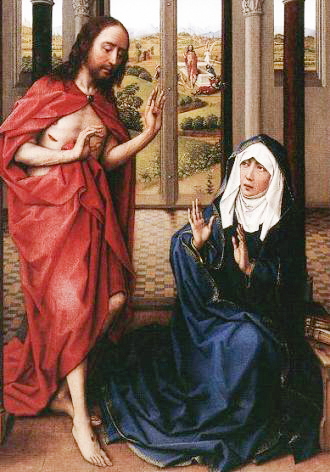 C’est donc ainsi que nous voyons la première résurrection de Marie, car morte au monde, elle a vécu avec le Christ. Morte à tout réconfort, affligée avec l’Homme de douleur, Elle a cru fermement qu’Il était le « Dieu des vivants et non des morts ». Morte à toutes les choses du monde, elle possédait déjà la vie éternelle promise par son Fils, au milieu des tempêtes qui l’entouraient. Elle y croyait, bien qu’elle ne puisse trouver de réconfort en aucune créature, ni même en Dieu lui-même, car il devait être crucifié. Cette première résurrection de Marie vient de l’espoir divin de la future résurrection de son Fils qui ne quitta jamais son âme. Elle était la Mère « qui se tenait près de la Croix de Jésus ».