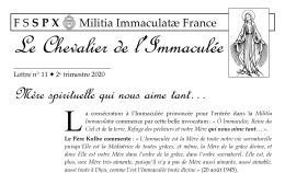Lettre n° 11 — 2e trimestre 2020 La consécration à l’Immaculée prononcée pour l’entrée dans la Militia Immaculatæ commence par cette belle invocation : « Ô Immaculée, Reine du Ciel et de la terre, Refuge des pécheurs et notre Mère qui nous aime tant… ». Le Père Kolbe commente :Lire la suite →