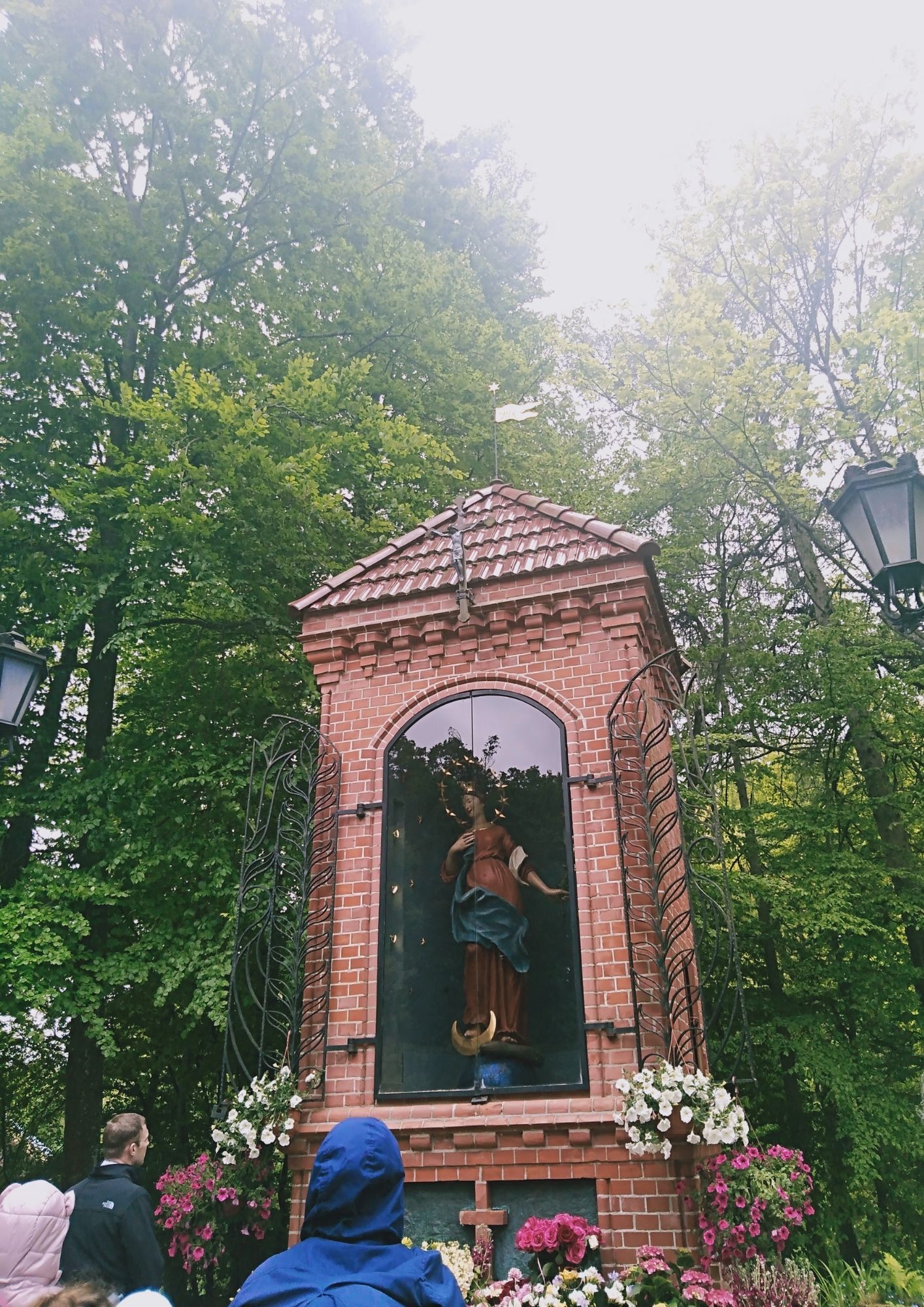 Depuis près de 250 ans, les femmes enceintes, les familles nombreuses, ainsi que les couples mariés désireux d’avoir des enfants viennent ici en pèlerinage alors, en cette fin du beau mois de Mai, dédié à la Très Sainte Vierge Marie, quelques 80 chevaliers se sont rendus au sanctuaire de Matemblewo en Pologne, dans la région de Gdańsk, en profitant sur leur chemin de 25 km pour distribuer une centaine de Médaille Miraculeuse avec le dépliant. Un des but de ce pèlerinage étant aussi de faire des actes de réparation pour les péchés commis contre la Maternité divine de Marie comme l’a demandé Notre-Dame de Fatima.