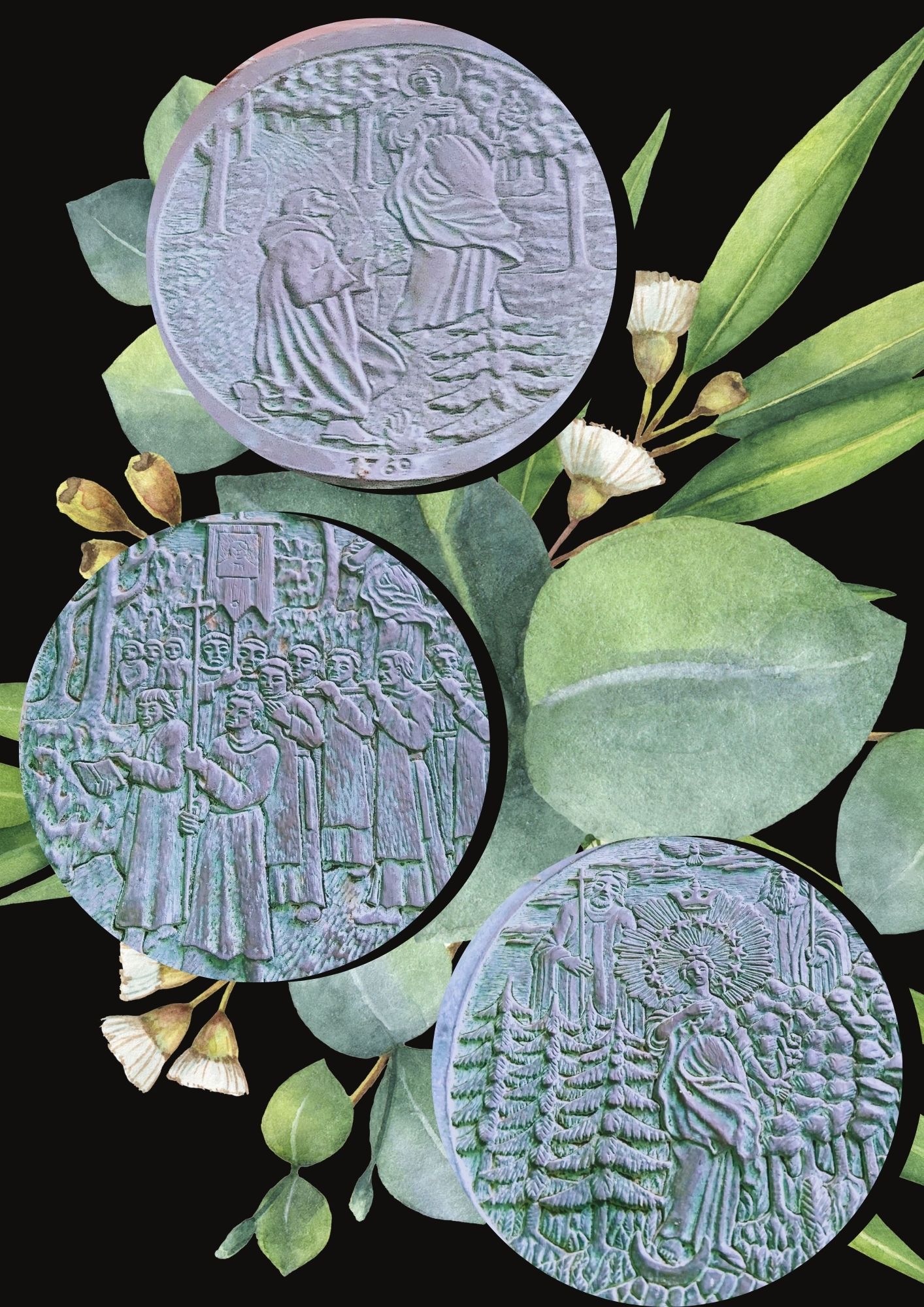 Peu de temps après, l’heureux couple se rendit à l’abbaye cistercienne d’Oliwa et raconta aux moines le miracle dont ils avaient été témoins. Les Pères ont recommandé de faire une statue de Notre-Dame de la Maternité, selon la description de Stanisław et de sa femme Maria. En 1790, la statue a été portée en procession solennelle d’Oliwa à Matemblewo comme nous pouvons le voir sur le médaillon de bronze. La nouvelle se répandant rapidement dans la région, les fidèles se sont rassemblés sur le lieu de la vision. La plupart d’entre eux étaient des femmes qui ne pouvaient pas donner naissance ou qui attendaient leur délivrance. Chacun de ces pèlerins apportait avec lui un sac rempli de terre pour édifier un petit monticule au sommet de la colline, au milieu de la forêt dans la vallée de Matemblewo. Les cisterciens ont alors érigé une chapelle en bois et y ont placé une statue de Marie.