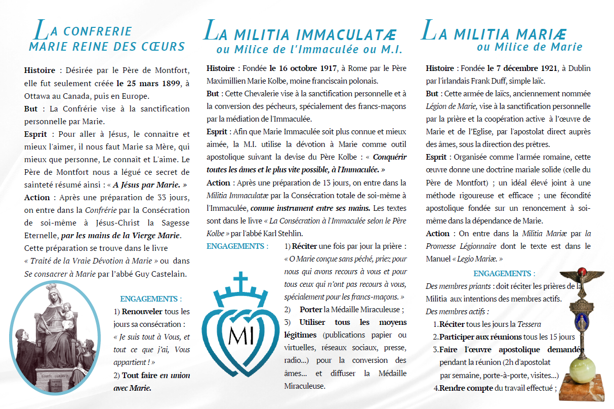 - La Militia Mariæ ainsi que leurs différences et les liens qui les unissent.