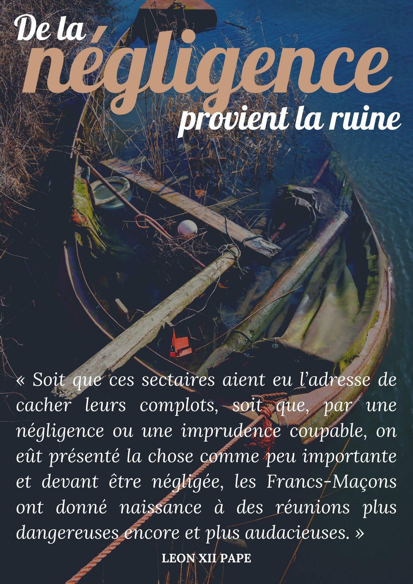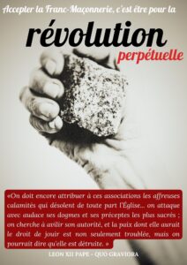 Vous aussi, Fils chéris, qui professez la religion catholique, Nous vous adressons particulièrement Nos prières et Nos exhortations. Évitez avec soin ceux qui appellent la lumière ténèbres et les ténèbres lumière. En effet, quel avantage auriez-vous à vous lier avec des hommes qui ne tiennent aucun compte ni de Dieu ni des puissances, qui leur déclarent la guerre par des intrigues et des assemblées secrètes, et qui, tout en publiant tout haut qu’ils ne veulent que le bien de l’Église et de la société, prouvent par toutes leurs actions qu’ils cherchent à porter le trouble partout et à tout renverser ? Ces hommes sont semblables à ceux à qui l’apôtre saint Jean ordonne de ne pas donner l’hospitalité, et qu’il ne veut pas qu’on salue (IIe Épître, v. 10) ; ce sont les mêmes que nos pères appelaient les premiers nés du démon.