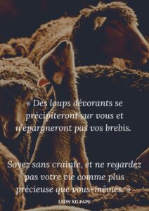 Plus sont grands les désastres qui menacent le troupeau de Jésus Christ, notre Dieu et Sauveur, plus doit redoubler, pour les détourner, la sollicitude des Pontifes Romains auxquels, dans la personne de saint Pierre, prince des apôtres, ont été conférés le pouvoir et le soin de conduire ce même troupeau. C’est à eux, en effet, comme étant placés au poste le plus élevé de l’Église, qu’il appartient de découvrir de loin les embûches préparées par les ennemis du nom chrétien pour exterminer l’Église de Jésus Christ (ce à quoi ils ne parviendront jamais) : c’est à eux qu’il appartient tantôt de signaler aux fidèles et de démasquer ces embûches, afin qu’ils s’en gardent, tantôt de les détourner et de les dissiper de leur propre autorité.