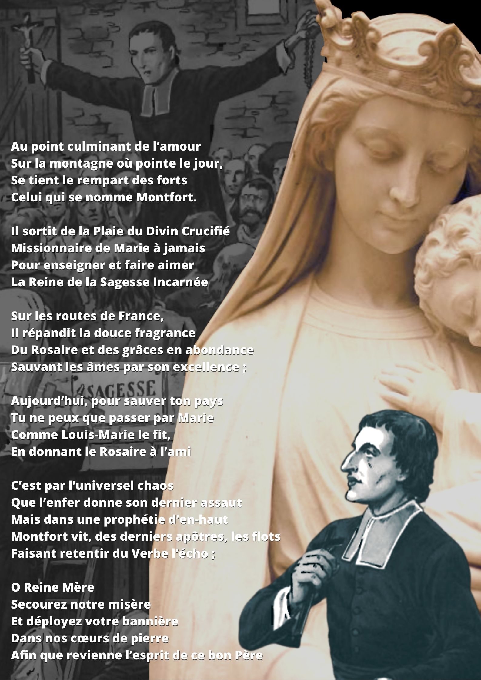 Ad Jesum per Mariam – A Jésus par Marie telle était la devise de St Louis-Marie ; et puisque cette voie est salvatrice pour nos âmes, elle doit l’être aussi pour nos pays : Ramenons donc nos patries à Jésus par Marie.