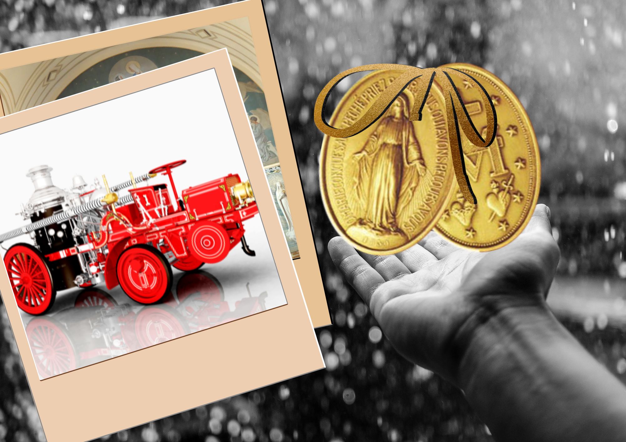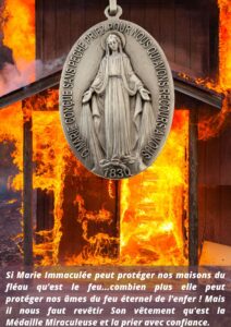 Un violent incendie avait éclaté dans la ville de Salonique. Le feu arrive bientôt en face de la maison des sœurs, c’est à dire que les bâtiments en vis-à-vis, de l’autre côté de la rue, à 2 mètres à peine de distance, sont atteints et dévorés par les flammes que le vent continue à propager en les activant. Déjà, le toit de la maison des sœurs et celui de la maison voisine, se couvrent d’une fumée épaisse ; j’ai jeté aussitôt plusieurs médailles miraculeuses et n’ayant aucun secours à espérer de personne puisque le bruit de la poudre qui explose encore à côté a fait fuir tout le monde, je me retire, il était inutile de m’exposer plus longtemps.