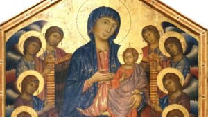 Kada je utjelovljenje postavljeno pred anđele, Marija je bila u njegovom središtu. Njena uloga u ovome otajstvu razljutila je sotonu. Predvidio je što bi značilo utjelovljenje: anđeli služe Djevici, pripremat će na razne načine njezino rođenje i navijestit će joj Božji dolazak među ljude. Služeći Bogočovjeku služili bi i Njegovoj Majci, a to bi dovelo do služenja ljudima u Kristovom Otajstvenom Tijelu. Lucifer je jasno razumio položaj u koji bi bio postavljen te se, odbacujući vlastito poniženje, neće pokoriti Kraljici anđela. Nebo je bilo podjeljeno u dva tabora, na one koji će služiti Božjemu naumu a po tome i Kraljici Neba, te na one koji to neće.