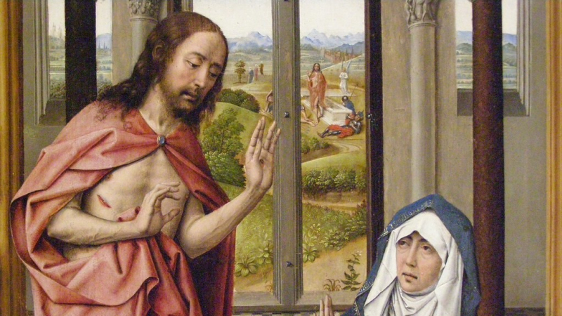 Ovo je prvo Marijino uskrsnuće, jer je Ona, umrijevši svijetu, živjela s Kristom. Mrtva za svu utjehu, tugujući s Čovjekom žalosti, čvrsto je vjerovala da je On „Bog živih, a ne mrtvih“. Mrtva za sve ovozemaljske stvari, posjedovala je Njegov vječni život usred oluja koje su ga okruživale. Ona je vjerovala u to, iako nije mogla naći utjehu ni u jednom stvorenju, pa čak ni u samom Bogu, jer je On trebao biti razapet. Ovo prvo Marijino uskrsnuće bila je božanska nada Njegova budućega uskrsnuća od kojega se Njezina duša nikada nije odmaknula. Bila je Majka „koja je stajala uz Isusov križ“.