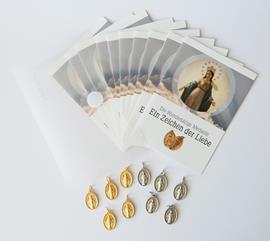 Con questo set d’apostolato potete sempre portare delle Medaglie con voi. Il piccolo raccoglitore di plastica contiene dieci Medaglie e volantini. Per favore, specificate all’ordine se desiderate il set in lingua italiana. |