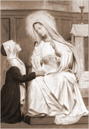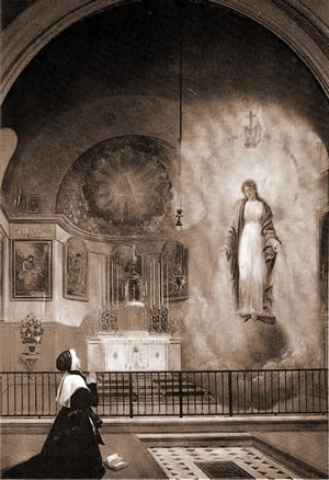 Katarzyna zobaczyła Matkę Bożą ze wspaniałymi pierścieniami kamieni na palcach, z których wychodziły świetliste promienie, osnuwające całą postać Maryi światłem. Wyjaśniła: „Promienie są symbolem łask Bożych, które wylewam na wszystkich, którzy mnie o to proszą.”.