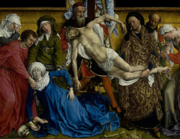 Autor obrazu umieścił Najświętszą Dziewicę w tej samej pozycji, co Jej Boskiego Syna, aby pokazać ich zjednoczenie w ofierze.