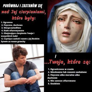 „Słuchałam wtedy, w absolutnej ciszy mojej duszy, zawieszonego Serca mojego Syna, przebitego tysiącem ran, które w konwulsjach szukało powietrza, które On sam stworzył.