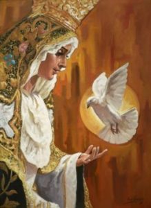 Maryja była obecna pośród Apostołów, kiedy Duch Święty zstąpił na nich pod postacią języków ognia. W sztuce kościelnej Maryja zawsze jest pośrodku – to sugestia, że płomień Ducha zstępuje na innych jedynie dzięki Jej pośrednictwu. Sakrament bierzmowania jest ‘naszą Pięćdziesiątnicą’. Życie ujęte przez pryzmat niezniszczalnego znamienia Ducha Świętego może zaprowadzić dusze na szczyt świętości.