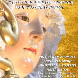 O Najwspanialsza i Niepokalana Królowo Nieba, Najświętsza Maryjo Dobrego Zdarzenia, najmilsza Córko Ojca Przedwiecznego, najukochańsza Matko Syna Bożego, najbardziej umiłowana Oblubienico Ducha Świętego, Czcigodna Świątynio Trójcy Przenajświętszej, w której Trzy Osoby Boskie złożyły skarbiec swojej Potęgi, Mądrości i Miłości!
