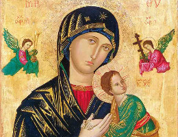 Matka Boża Nieustającej Pomocy Tytuł Matki Bożej Nieustającej Pomocy jest związany z wizerunkiem Maryi. Historia wizerunku nie jest dokładnie znana. Niektóre źródła podają, że został on namalowany na Krecie w IX w.; inne dane zaś mówią o wieku XII. Obecnie cudowny wizerunek Matki Bożej Nieustającej Pomocy znajduje się w rzymskim kościele św. Alfonsa przy via Merulana.Czytaj dalej →
