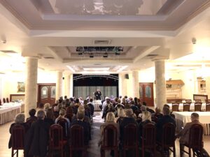 wykładzie pierwszych wiernych Bractwa z Częstochowy. Spróbujmy przenieść się pamięcią na ul. św. Barbary 15 w Częstochowie. To właśnie tutaj mieściła się pierwsza kaplica Bractwa św. Piusa X, założona w 2001 r. To przy tej kaplicy powstała pierwsza w Polsce księgarnia wydawnictwa Te Deum, którą poświęcił ks. Karol Stehlin. Z wielką więc radością i zainteresowaniem wysłuchaliśmy wykładu w sali Hotelu „Złote Arkady”, na który przybyło około 70 osób.
